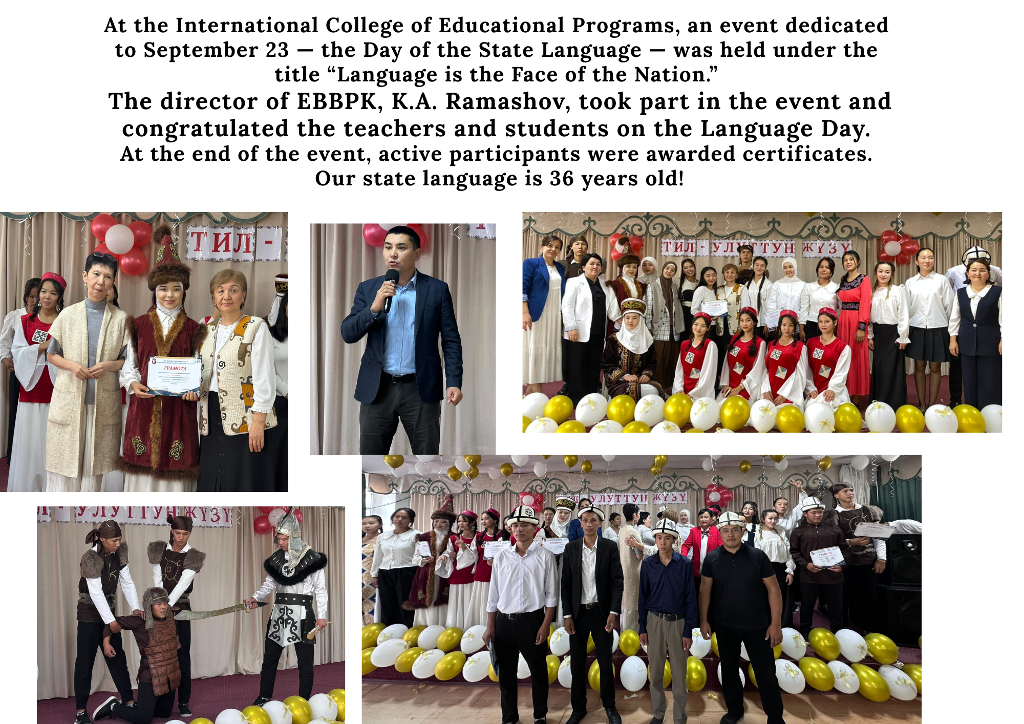 6 декабря 2024 года, ко дню рождения великого кыргызского писателя Чингиза Айтматова, среди студентов 1 курса медицинского колледжа на высоком уровне прошел интеллектуальный конкурс под названием «Мир Айтматова – в конкурсе». Победители были награждены дипломами I, II, III степени медицинского колледжа, почетными грамотами и денежными призами. Организаторами конкурса выступили преподаватели кафедры общественных дисциплин ЭАББПК Кызбурак Муратбаева, Асылгуль Орунбекова, Жумабек кызы Гулкан.